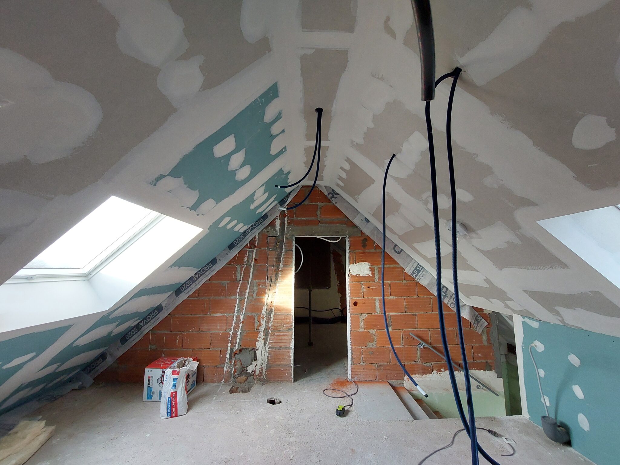 - Finitions : Plaques de plâtre BA 13, bandes enduites.