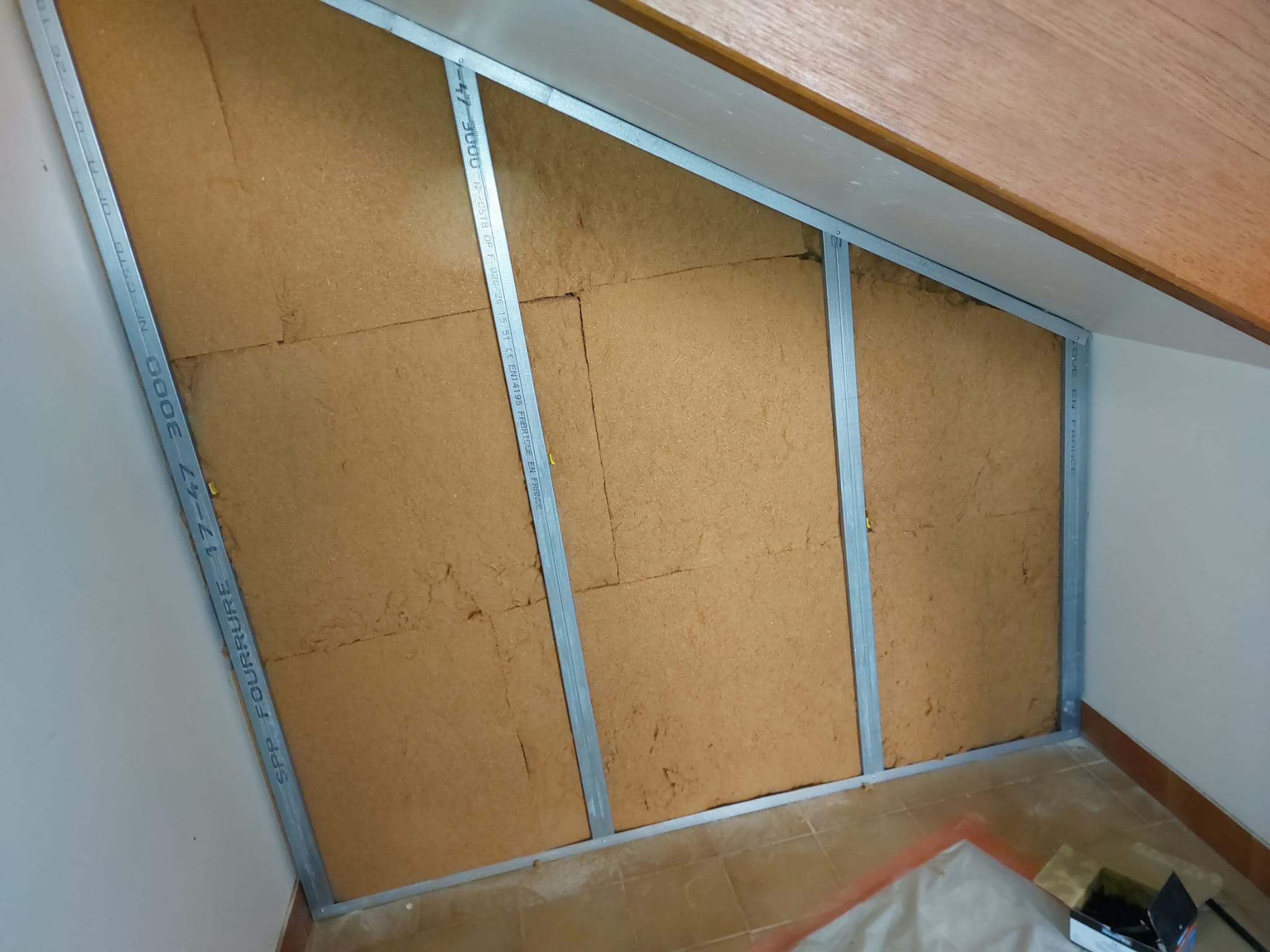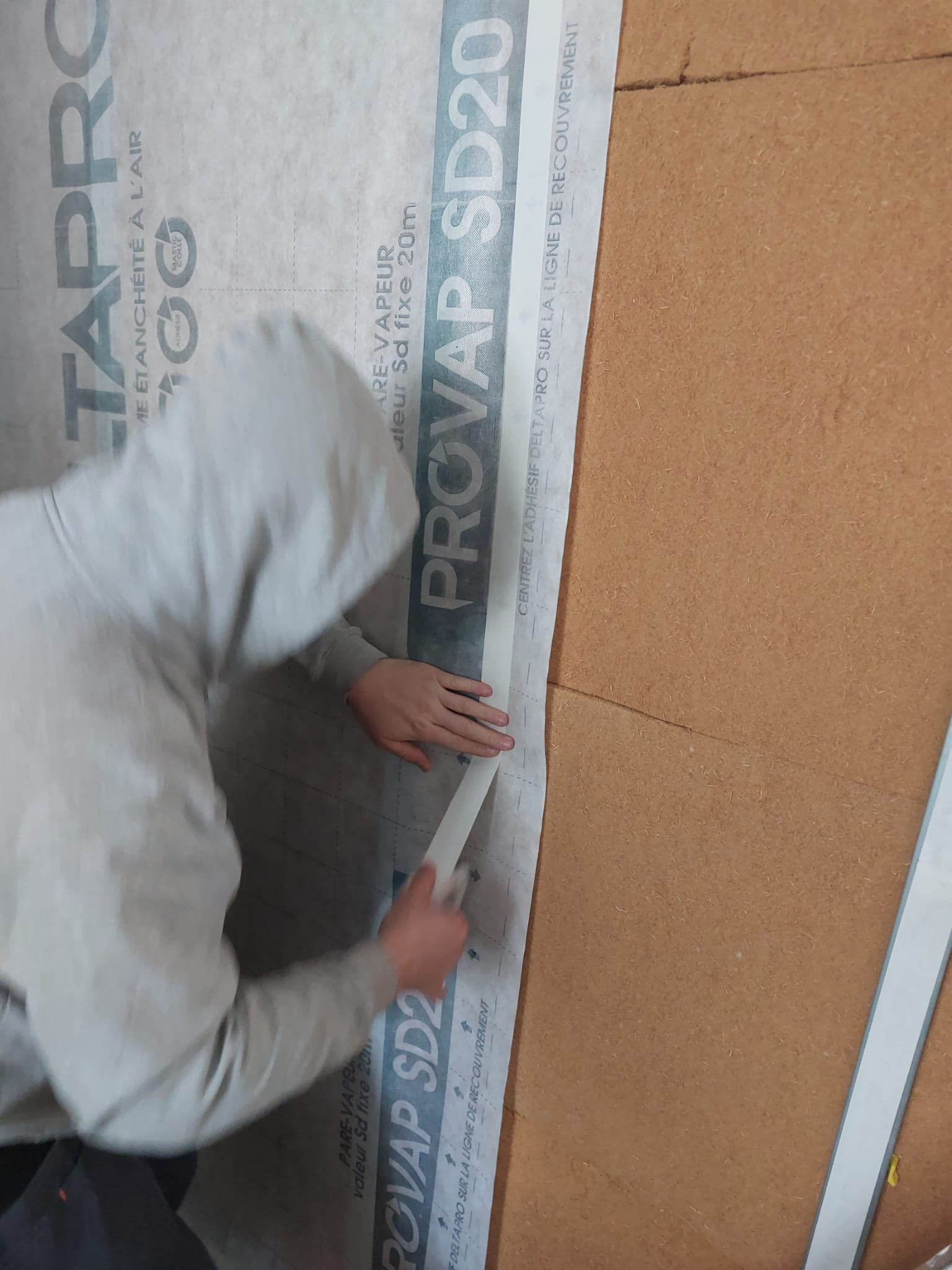 - Par l’intérieur : Isolation thermique des combles perdus en laine de bois pour une résistance thermique de 7,25 m²·K/W.